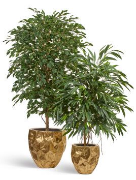 Композиция № 38 — кашпо Treez Effectory Metal Design Crumple Сусальное золото с Фикусом и Лонгифолией