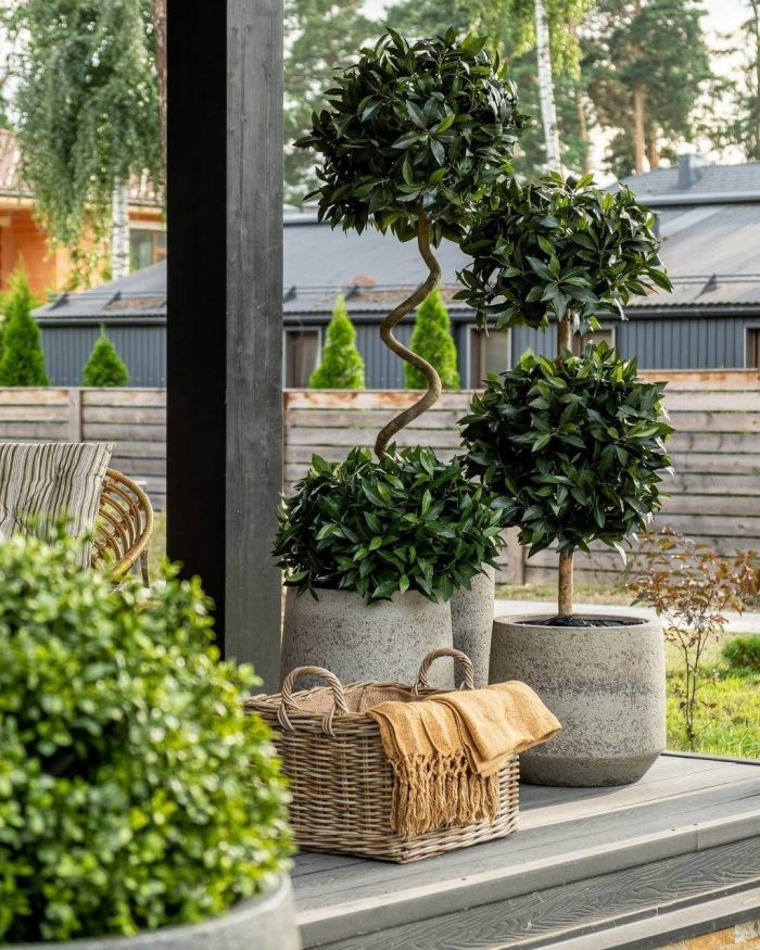 Определите задачу: вам нужен акцент у двери, зонирование террасы или зелёная «стена» вдоль фасада.