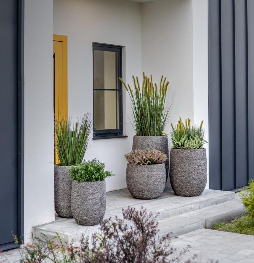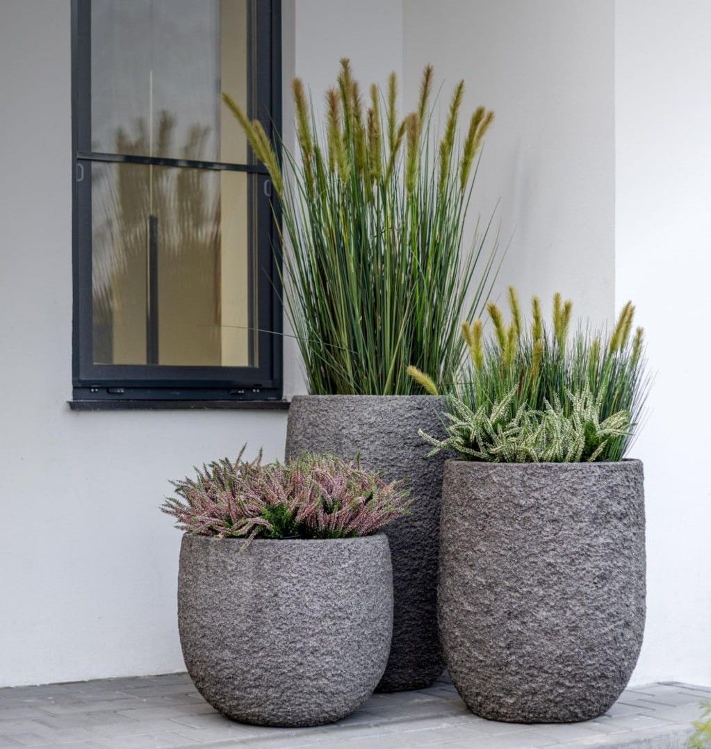 Полистоуновая основа обеспечивает прочность при небольшом весе. Кашпо устойчивы к сколам, подходят для интерьерного использования. Для ухода достаточно протирать мягкой тканью. Текстурное покрытие не боится случайных капель воды.