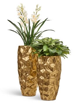 Композиция № 39 — кашпо Treez Effectory Metal Design Crumple Сусальное золото с Орхидеей
