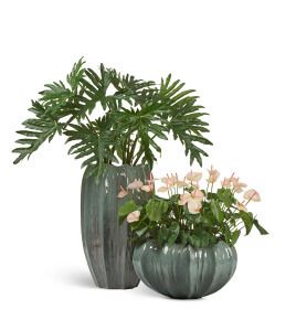 Композиция № 122 — кашпо Treez Effectory Aura с антуриумом и филодендроном